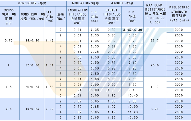 PRODUCT DESCRlPTION 1. Rate temperature: 90℃ 2. Rate voItage: 300/500V 3. Standard:GB/T5023.5-2008 IEC60227-5 DIN VDE0281-5 4. Solld or stranded .tinned or bare copper conductor 0.75-2.5mm 5. PVC insulation, ROHS、REACH compliant. 6. PVC jacket, ROHS、REACHcompliant. 7. Uniform insulation thickness to ensure easy stripping and cutting 8. For general purpose internaI wiring of appliance. |